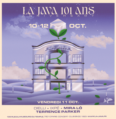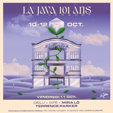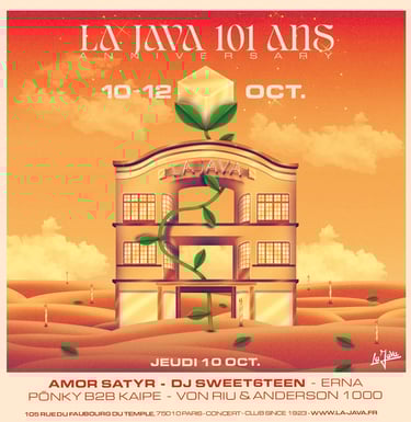 Direction artistique réalisée pour célébrer un moment unique : les 101 ans de La Java Belleville un monument de la scène parisienne.