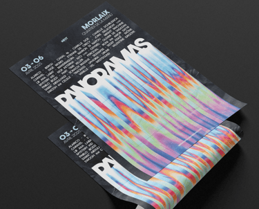 Réalisation de la Direction Artistique de la 27ème édition du festival Panoramas. Festival incontournable des musiques électroniques qui a lieu à Morlaix. Création de l'affiche et des déclinaisons print et digitales.